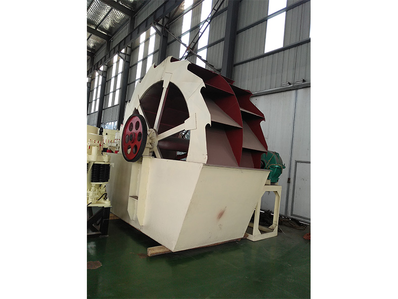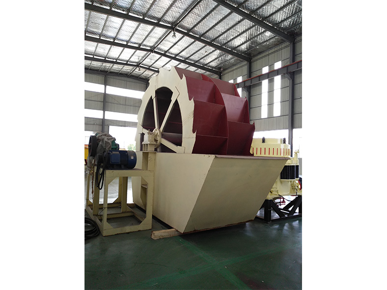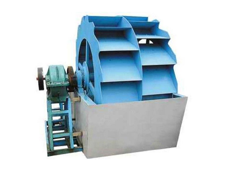 工作時,電機通過三角帶、減速機、齒輪減速后帶動葉輪緩慢轉(zhuǎn)動,砂石有給料槽進入洗槽中,在葉輪的帶動下翻滾,并互相研磨,除去覆蓋砂石表面的雜質(zhì),同時 破壞包覆砂粒的水汽層,以利于脫水;同時加水,形成強大水流,及時將雜質(zhì)及比重小的異物帶走,并從溢出口洗槽排出,完成清洗作用。干凈的砂石由葉片帶走,  后砂石從旋轉(zhuǎn)的葉輪倒入出料槽,完成砂石的清洗作用。